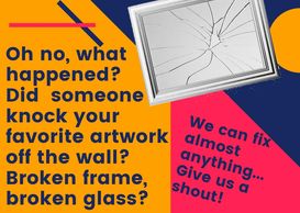 We will do our best to fix what's broken. Bring in the pieces and we will tell you what we can do. We cannot, however, restore your art. That we leave to art restoration experts.